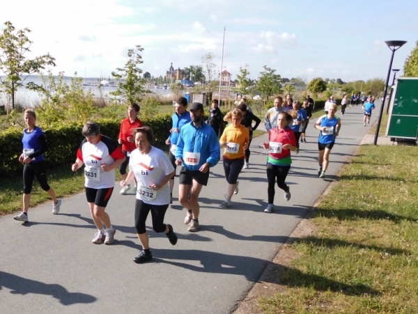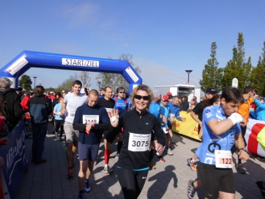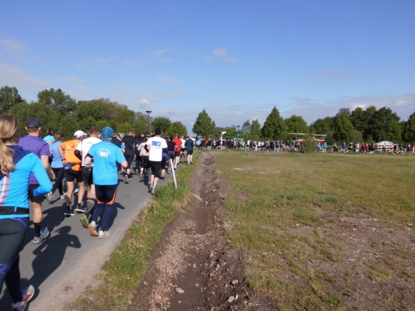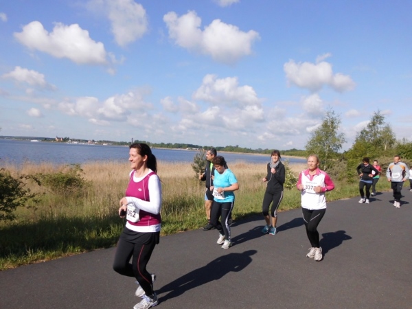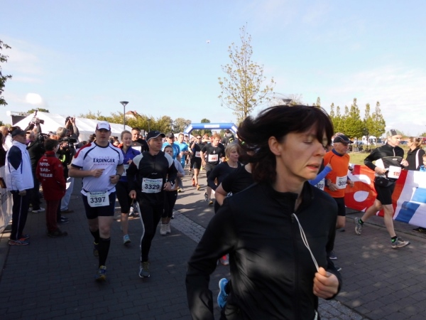 Bei Kilometer fünf denke ich darüber nach, wie doof man doch manchmal sein kann. Das noch so viele Läufer hinter mir sind ist nicht Ausdruck meiner Leistungsstärke, sondern der Tatsache geschuldet, dass die 10-Kilometer-Läufer zeitgleich mit uns gestartet sind. Da gibt es wohl auch einige, die nicht gewinnen wollen. Die biegen nun ab und um mich wird es einsam. Ich habe zwar noch das Erfolgserlebnis, dass ich die Startnummer 2 der Frauen überhole, aber ich glaube, das sagt auch nichts.