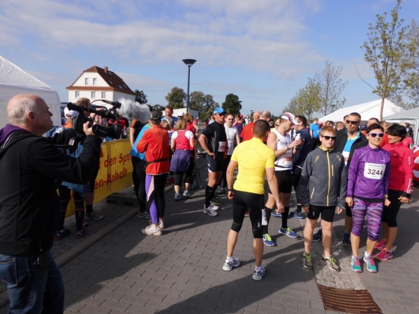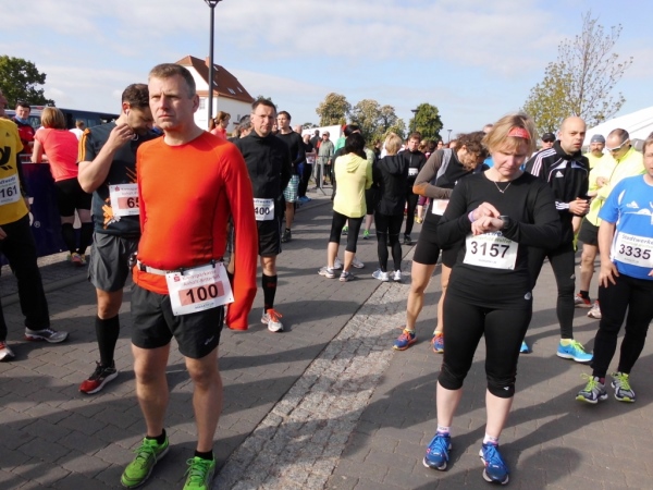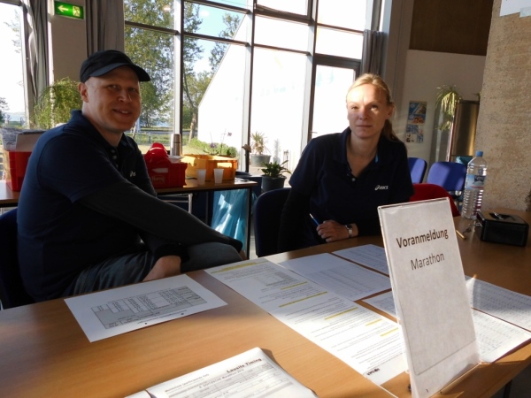 Bei der Startunterlagenausgabe im Wasserzentrum Bitterfeld scheinen alle auf mich zu warten. Ob am Marathon-, Halbmarathon- oder Bernsteinlaufstartunterlagenausgabetisch, die dahinter sitzen schauen erwartungsvoll auf mich und denken, da ist er endlich – der erste Kunde. Oder sie denken, was will denn der schon hier, zwei Stunden vor dem Start.