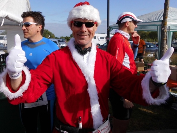 Der Routenplaner sagt mir, dass es bis Bitterfeld 80 Kilometer sind. Ich kenne eine Abkürzung – heute ist es ein Umweg. Es scheint einfach nicht mein Tag zu sein. Selbst das Wetter ist gegen mich. 3 Grad zeigt das Thermometer, als ich am Start aus dem Auto steige. Und auch während des Laufes wird die Quecksilbersäule nicht über 10 Grad klettern und uns ein teilweise kalter Wind entgegenblasen.