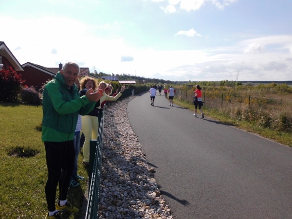 Über viele Kilometer habe ich den Läufer mit der Nummer 66 mal vor, mal hinter mir. Abhängig davon, wie oft ich fotografiere. Ihn interessiert dass nicht, er läuft wie ein Uhrwerk. Und erzählt mir, dass er auf eine Zeit von 4.45 Stunden zuläuft.