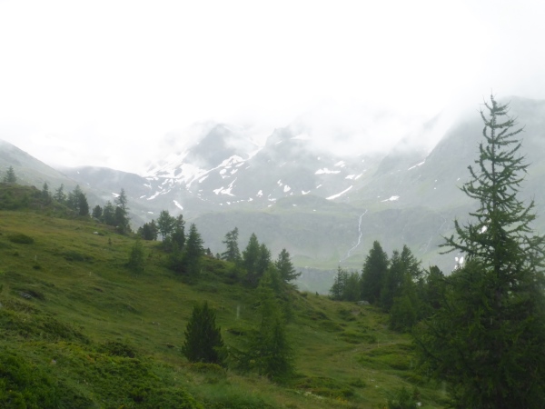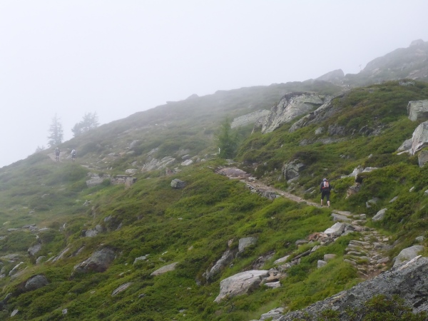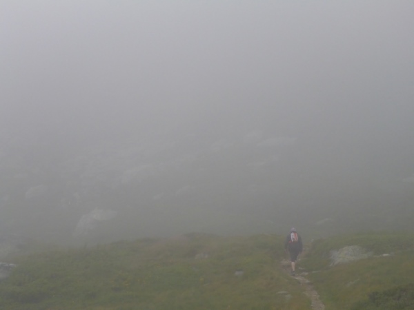 Nebel, Regen, Stille - eine meditative Stimmung. Ich glaube, eine Stunde lang sehe ich keinen Menschen vor oder hinter mir. Selbst die Murmeltiere bleiben heute in ihren Höhlen.