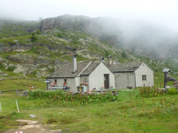 Der berühmte Simplon-Adler bleibt für uns im Nebel verborgen. Der über 9 Meter hohe Adler aus Granitquadern wurde im Zweiten Weltkrieg von einer Gebirgsbrigade als Erinnerung an die "Wacht am Simplon" gebaut. Schon die Römer nutzten den Pass, aber erst der Stockalper ließ einen gut nutzbaren Transportweg anlegen. In seinem Auftrag entstand Mitte des 17. JH der Weg mit seinen Befestigungen und Brücken, aber auch unterwegs viele Lagerhäuser und Unterkünfte. Ein gutes Geschäft, denn er hatte ja auch das Transportmonopol über den Pass. Um 1650 beschäftige er 212 Säumer, die mit Maultieren die Waren transportierten.