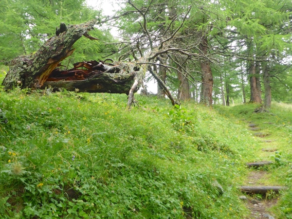 Ich trinke schnell Bouillon und Cola, dann eile ich weiter. Während der nächsten 1,5 Stunden laufe ich auf dem Abschnitt des Stockalperweg, den wir bereits gestern von Gabi hier herauf gekommen sind, nur dieses Mal eben bergab. Toll, es so richtig rollen zu lassen! Ich genieße den Lauf auf diesen schönen Trails.