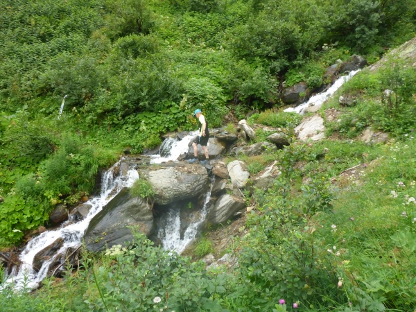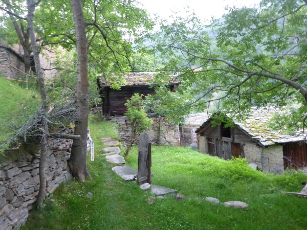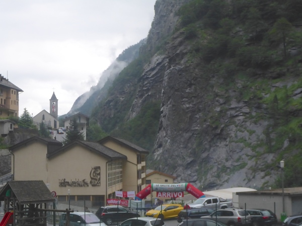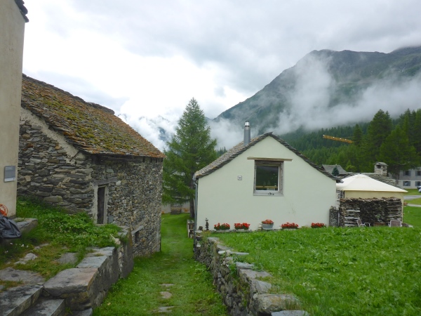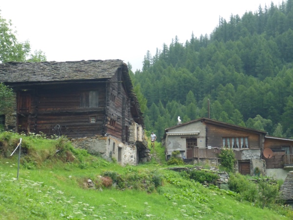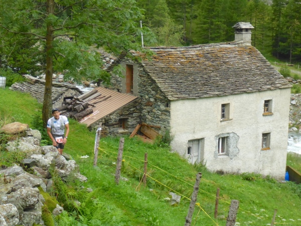 Als ich den Weiler Gabi (km 29,5) erreiche, habe ich viel Vorsprung auf das Zeitlimit. Erst in 90 Minuten sollen hier die letzten Läufer auf die bereits von gestern bekannte Route durch die Gondoschlucht geschickt werden. Die normale Tagesetappe führt dagegen auf einer Variante des Stockalperwegs über den Berg.