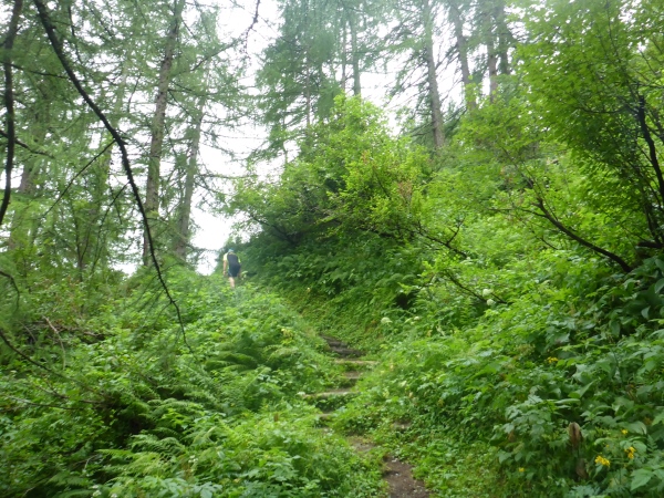 Danach geht es wieder über herrliche Bergwaldtrails aufwärts. Und es regnet wieder.