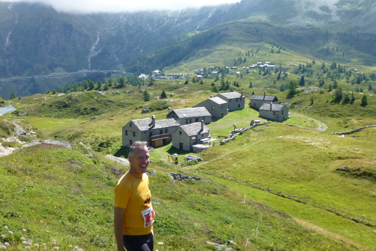 Wer an einen Gebirgspass denkt, für den ist logisch: auf der einen Seite geht es hinauf, auf der anderen wieder hinunter. Das mag für die den Simplon querenden Autofahrer gelten, nicht jedoch für die Läufer des Gondo Marathon. Für uns ist der Simplon lediglich Zwischenstopp auf dem Weg zum nochmals über 400 Meter höher gelegenen Bistinenpass. Wo der konkret sein soll, kann ich zunächst noch gar nicht ausmachen. Zumindest so viel kann ich erkennen: Es geht weit hinauf, verdammt weit hinauf.