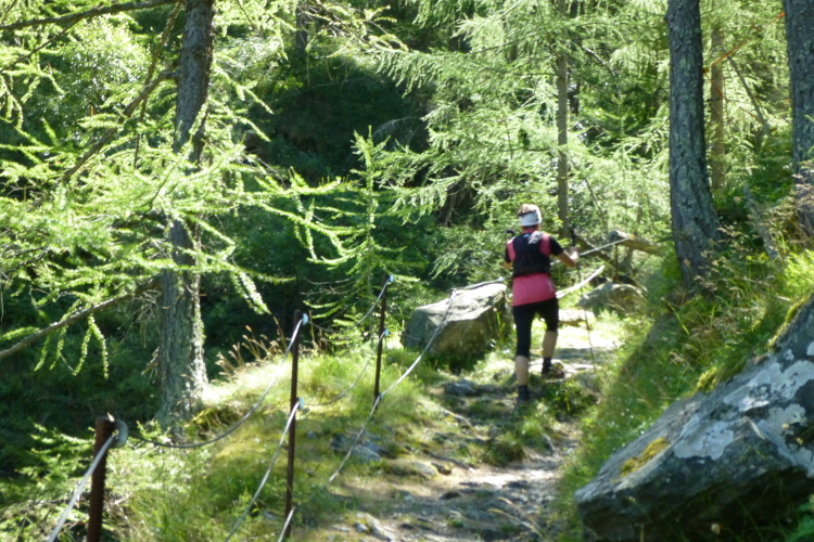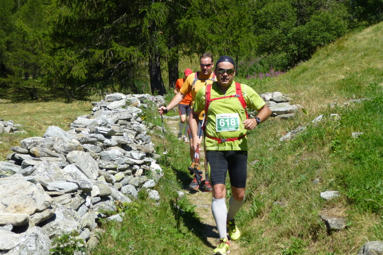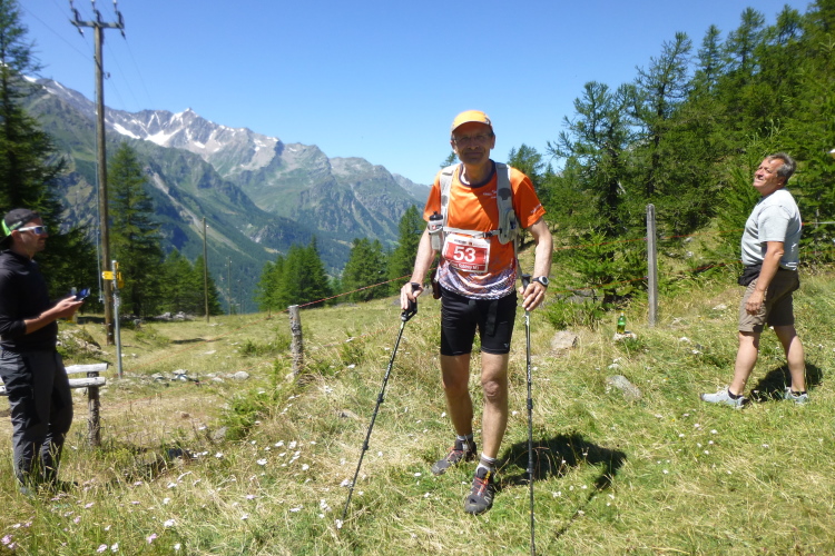 Auf die Läufer wartet als besonderes „Schmankerl“ zum Abschluss der steile Aufstieg zum Furggu mit 700 Höhenmetern auf drei Kilometern und anschließendem ebenso steilen Abstieg und Auslauf über das Zwischbergental nach Gondo. Dieser Streckenteil ist für mich absolutes Neuland, nachdem der Lauf 2009 wegen eines Unwetters in Gabi abgebrochen wurde. Mit respektvollem Raunen äußerten sich bisher all die Läufer, die diesen Abschnitt schon kennen. Und so mache ich mich auf einiges gefasst, auch wenn ich frisch gestärkt durchaus motiviert bin, diese Hürde zu meistern.