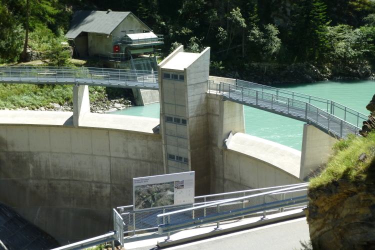 Mal in engen Serpeninen, mal in langen Geraden am Hang entlang zieht sich der Pfad. Und damit wir nicht aus der Übung kommen, fordern ab und an teils kräftige Gegenanstiege die Kondition. Langsam, aber sicher naht doch der Talgrund. Immer dichter wird der Wald und üppiger die Natur. Oberhalb des Türkisblau eines Stausees führt der Weg in die felsiger und schroffer werdende Schlucht hinein. Großes Wasser nennt sich breite Bergbach, der durch den Talgrund führt