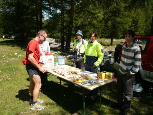 Während in der Zwischenzeit Laufschuhe in Reih und Glied an der Sonne trocknen, sitzt man gemütlich beisammen und erfährt unter anderem so manches Detail von anderen Veranstaltung, die auch noch auf der Wunschliste stehen.