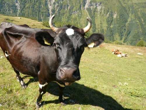 Weiter unten meldet ein stattlicher Bulle seinen Anspruch auf Wegbenutzung an, indem er sich dort breit macht. Rücksichtnahme ihm gegenüber, in Form von gemächlichem Schritttempo, fällt mir sehr leicht, was er mir durch demonstratives Nichtbeachten dankt. Seine Haremsdamen sind da wesentlich neugieriger und - naturbelassen wie sie mit ihren Hörnern sind - auch nicht zu ignorieren.
