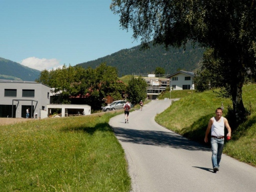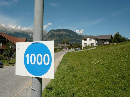 Ein kurzes Stück geht es noch durch den Wald, in welchem ein sprudelndes Bächlein für Kühlung sorgt. Das darauf folgende Schild, welches verbleibende 1500 Meter anzeigt, verbessert das Wohlbefinden auch. Bis zum Dorfzentrum sind auf der Straße noch ein Kilometer zurückzulegen; ein kleines Pflichtprogramm zum Abschluss einer großartigen Kür.