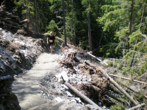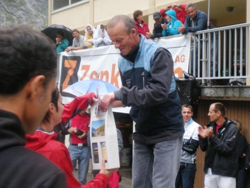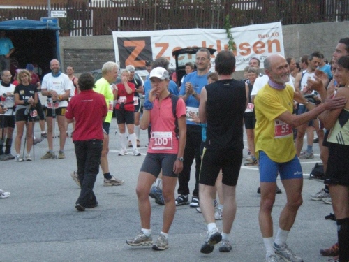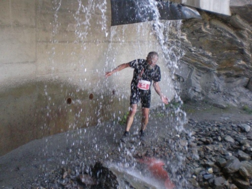 Am Ziel angekommen bin ich so voller Eindrücke, dass mich sogar die kalte Dusche kaum stört. Im doppelten Sinn frisch geduscht, setzte ich mich wieder mit Pommes und Bratwurst ins Festzelt, wo eine gute Stimmung herrscht. Der Rennabbruch scheint kein Grund für Depressionen zu sein; wer in Gondo an den Start geht, scheint wirklich zu wissen, auf was er sich einlässt. Entsprechend wird bei der Siegerehrung das Organisationskomitees mit Applaus bedacht, als die Hintergründe für den Entscheid zum Abbruch bekanntgegeben werden. Aber leider werden diese Aspekte des Laufsports (für die Mehrheit der Bevölkerung Extremlaufsport) in der Presse nicht so hochgejubelt wie die Fälle, in denen etwas schief läuft und tragisch endet.