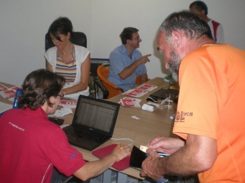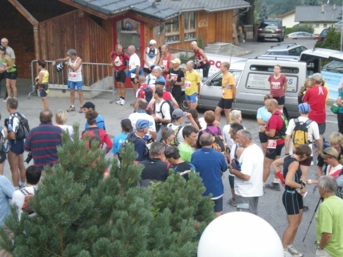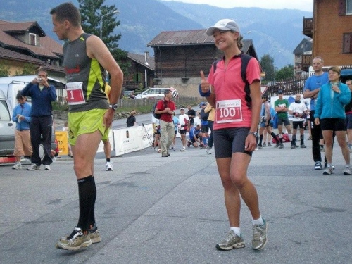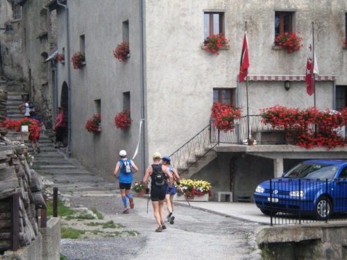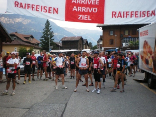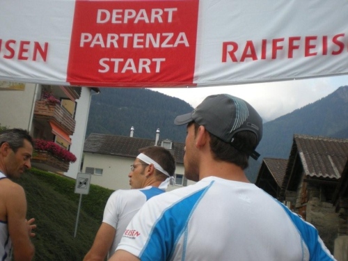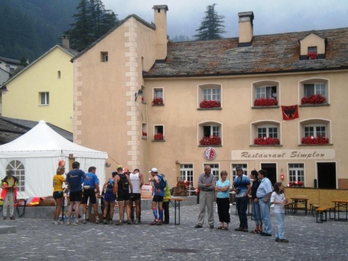 Als wir in Iselle aus dem Simplontunnel kommen, schlägt uns tropisch feuchte Luft entgegen und im gut besetzten Postauto schwitzen wir uns das letzte Teilstück nach Gondo. Das Tourismusbüro ist heute das Rennbüro, und wer seine Startunterlagen schon hat, setzt sich gemütlich auf den kleinen Dorfplatz und sorgt für einen ausgeglichenen Flüssigkeitshaushalt.