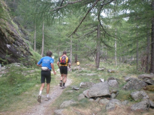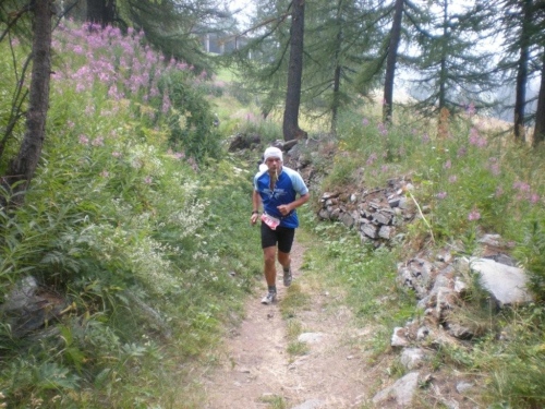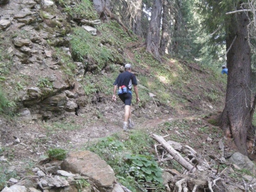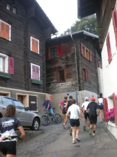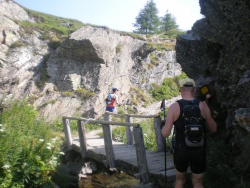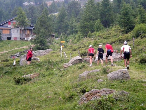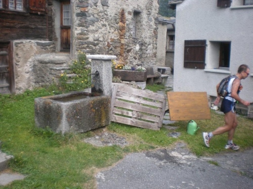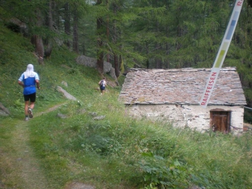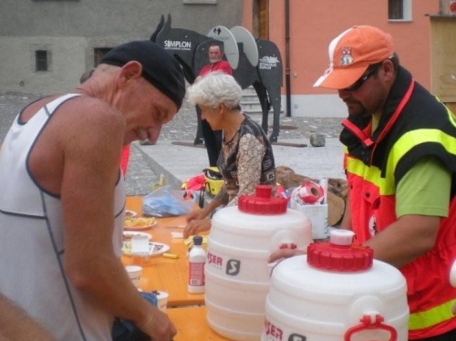 Von Rothwald hinunter nach Taferna schließen aber wieder alle bekannten Gesichter auf. An diesem Verpflegungsposten sehe ich Läufer, die ich bisher nicht wahrgenommen habe. Kein Wunder, es sind Teilnehmer des Gondo-Runnings und -Walkings, die eine halbe Stunde nach uns auf die 28km lange Strecke über den Stockalperweg direkt nach Gondo gestartet sind und auf welche wir nach unserem Umweg ins Gantertal hier treffen.