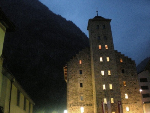 Zur Pastaparty geht es dann in das Dachgeschoss des Stockalperturms, der nach der teilweisen Zerstörung bei seinem Wiederaufbau in einer harmonischen Einheit von Alt und Neu zu einem architektonischen Schmuckstück wurde. Welch drastischer Wandel gegenüber seiner Erscheinung Anfang letzten Jahrhunderts: