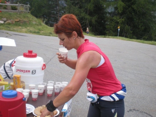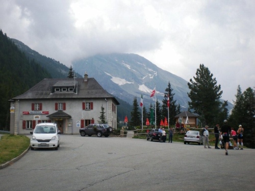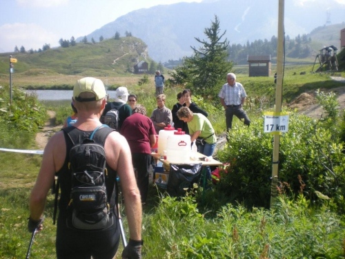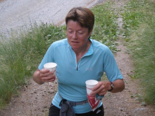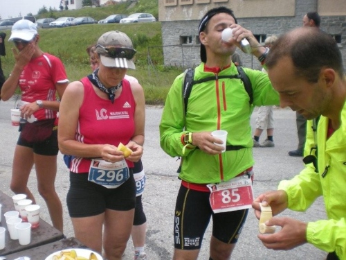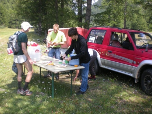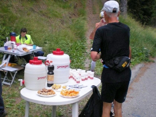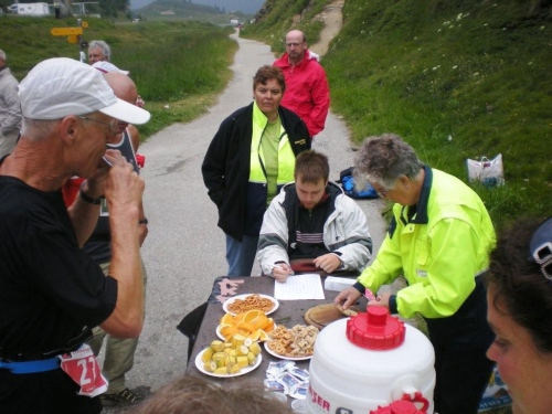 Die heute mit roten Startnummern versehenen Durchreisenden gehören zu den Privilegierten, trotzdem werden sie wenig später auf der Passhöhe wieder mit Speis und Trank versorgt.