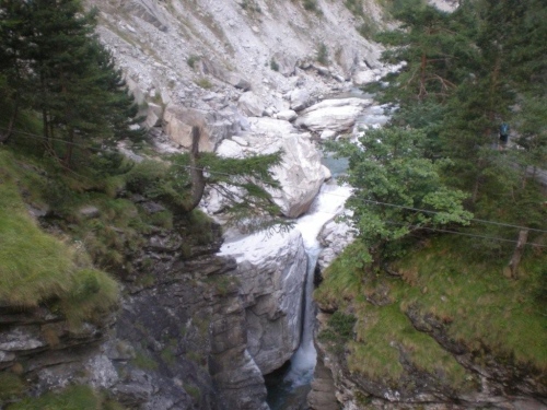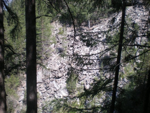…die 5km lange, prachtvolle und grossartige Schlucht von Gondo beginnt, deren stellenweise nahezu senkrecht aufstrebenden Felswände vielfach 700m bis 900m Höhe erreichen.