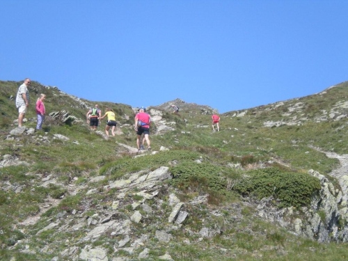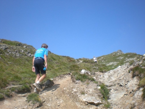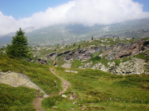 Ich habe den Eindruck, dass in Sachen Unwetter das Gröbste vorüber ist, meine Beine fühlen sich auch in diesem Anstieg recht locker an, ich bin also voll motiviert, das letzte Teilstück in Angriff zu nehmen, denn ich habe schon den Verpflegungsposten auf Furggu im Blick.