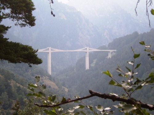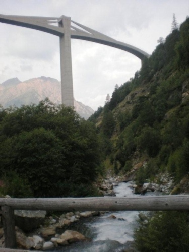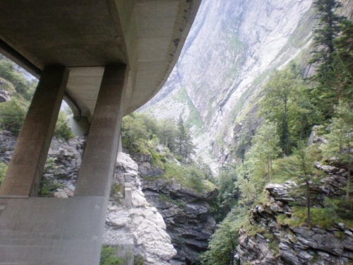 Von Weitem ist die Ganterbrücke der Simplonstraße zu sehen. Kaum haben wir wieder den Talgrund erreicht, schreiten wir unter diesem imposanten Brückenbauwerk untendurch, zu dessen Besonderheiten die geschwungene S-Form und die größte Spannweite aller Schweizer Brücken zählen. Von da an geht es wieder aufwärts, denn direkt unter der Fahrbahn der Brücke ist auf der anderen Talseite der nächste Verpflegungsposten.