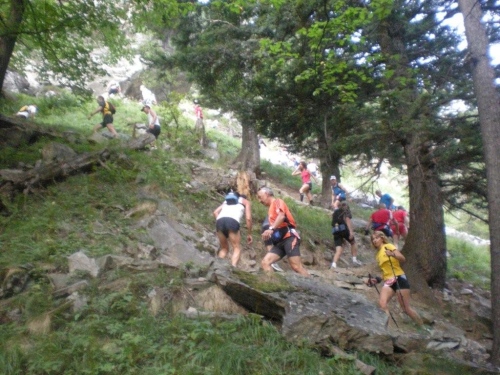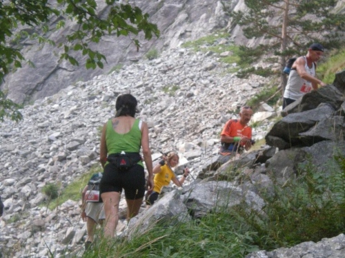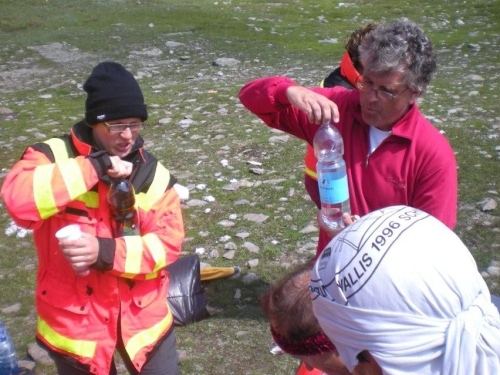 Beschwingt steuere ich darauf zu und will mir noch eine kleine Stärkung für den steilen Abstieg genehmigen, da wird mir mitgeteilt, dass das Rennen abgebrochen wurde. So groß die Enttäuschung ist, so groß sind mein Verständnis und der Respekt für die Rennleitung, einen solch unpopulären Entscheid zu fällen. Die Einheimischen wissen nur zu gut, mit welcher Gewalt die Natur zuschlagen kann und der Abstieg vom Furggu wäre zu gefährlich, so wie auch das Running abgebrochen werden muss, weil die Furten in der Gondoschlucht zu viel Wasser führen und Steinschlag zu verzeichnen ist.