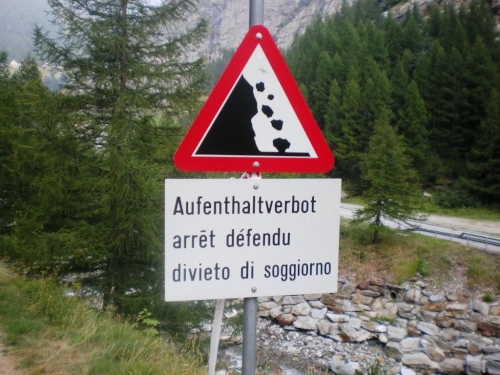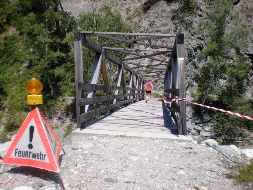 Dass Leben hier ist kein Ponyhof ist, wird auch an den Warnschildern deutlich, die den Aufenthalt auf gewissen Abschnitten des Weges verbieten. Und auch die befestigten Furten, in denen noch vom letzten Schauer mitgeschwemmtes Geröll liegt, machen deutlich, dass da bei Niederschlag etwas abgeht.
