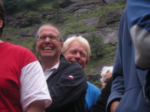 Trotzdem fühle ich mich beim Aufstehen ziemlich fit und gehe gespannt nach oben zum Frühstück. Und ein weiteres Mal wird uns mehr geboten, als ich mir vorgestellt habe. Mehr als genug von allem für alle und die Auswahl ist groß. Da der erste Start aber schon um 7.00 Uhr ist, bleibt etwas weniger Zeit, zumal uns Brigitte Wolf eindringlich bittet, nicht das Wetter vor der Tür als Maßstab für die zu wählende Kleidung zu nehmen. Der Simplonpass liegt bereits in Wolken und in Gondo sind schon die ersten Tropfen gefallen.