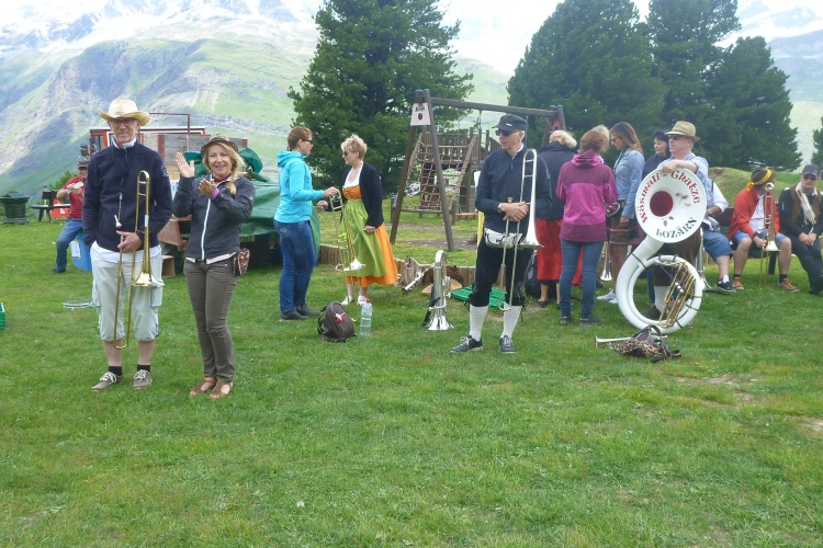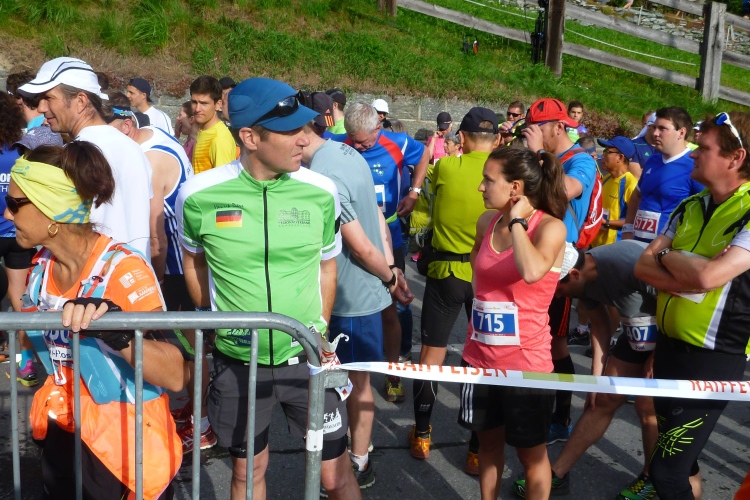 Schöner Sonnenschein erwartet uns in St. Niklaus. Alles ist bestens organisiert, vom Vortrag der Alphornbläser bis zur Taschenabgabe. Die Wartezeiten an den Toilettenhäuschen sind kurz. Wer möchte, kann schon etwas zu trinken bekommen.