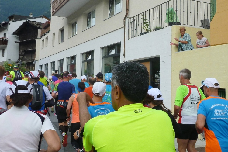 So touristisch es hier auch zugeht: Im Ortsteil Hinterdorf sind viele historische Wohn- und Lagergebäude zu sehen, man wähnt sich um einige Jahrhunderte zurückversetzt. Auch die Neubauten sind im sonnengeschwärzten Lärchenholz errichtet. Einige typische Häuser, die teils als Heuschober, teils als Speicher für Lebensmittelvorräte dienten, stehen auf seltsam anmutenden Füßchen mit Platten drauf. Irgendwie sieht das nach Erdbebenschutz aus, rufe ich Judith zu. Ein einheimischer Läufer erklärt, dass die flachen Steinplatten Mäuse am Zugang zu den Speichern hindern sollen.
