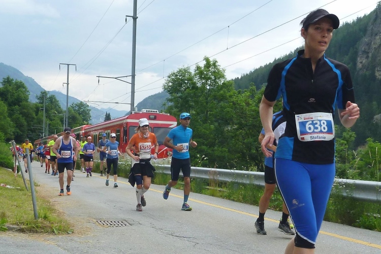Der Sonntag beginnt wolkenverhangen. Die Hotelbesitzerin gibt uns den Tipp, dass oberhalb 2.600 Metern die Sonne scheint. Mit vielen anderen Läufern, erkennbar an den Finisher-Hemden, fahren wir noch mal auf den Gornergrat und genießen den fantastischen Rundumblick. Ich erzähle allen Marathonis mit ihren blauen Startnummern, dass sie auf den letzten 3,6 Kilometern wirklich was verpasst haben und das nächste Mal unbedingt den Ultra mitnehmen müssen. Recht spät treten wir die Heimreise an und folgen der Route des Glacier Express über den Furkapass in Richtung Chur.