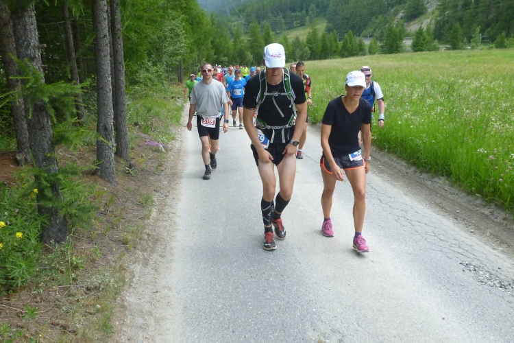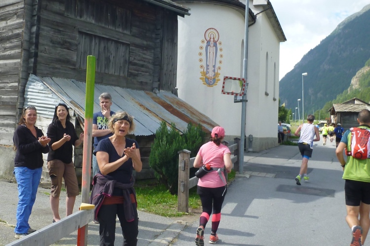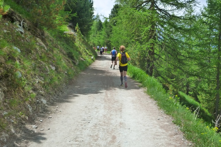 Ein Blick auf den Streckenplan lässt vermuten: Die ersten 21 km sanft bergauf und danach ins steilere Trailgebiet. Dass dem nicht wirklich so ist, erfahren wir schon kurz nach dem Start. Eine Schleife durch St. Niklaus und schon befinden wir uns auf einem Wanderweg. Anstehen ist angesagt. Belohnt werden wir danach mit einem Trimmpfad. Aber wer hat jetzt schon Lust, an irgendwelchen Stangen zu hangeln?