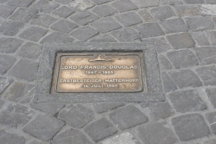 Auf Bodenplatten sind hier keine Filmstars verewigt, sondern die Matterhorn-Pioniere. Allen voran der Brite Edward Whymper, dem 1865 die Erstbesteigung gelang, sowie seine beiden Zermatter Begleiter Peter Taugwalder senior und junior. Tragisch: Vier weitere Mitglieder dieser Seilschaft stürzten beim Abstieg in den Tod; der Grund dafür konnte nie genau ermittelt werden.