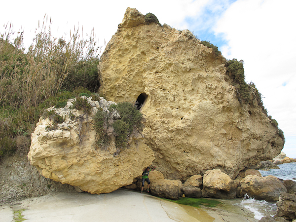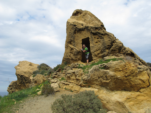 Wir entdecken ein großes Loch im Fels. Ist das vielleicht die sagenhafte Höhle der Kalypso, die der Nymphe und ihrem unfreiwilligen Geliebten Odysseus als Liebeslager gedient haben soll?