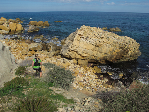 Eben noch gefällige Hügel werden plötzlich zu grau zerklüftetem Gestein, dem die Trockenmauern Wege, Stufen und Kerben abringen. Um die Schönheit der Insel zu betrachten, müssen wir anhalten. Neugierig schaue ich einem Gecko nach, der über eine Mauer verschwindet, und bin erstaunt über den weiteren spektakulären Ausblick. Von weitem sieht man den gold-gelben Sand der San Blas Bay und immer im Blick leuchtend blau das Mittelmeer.