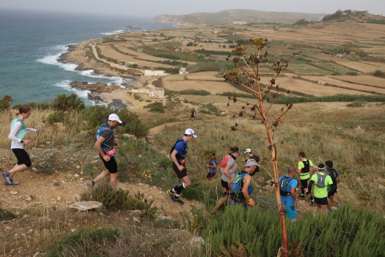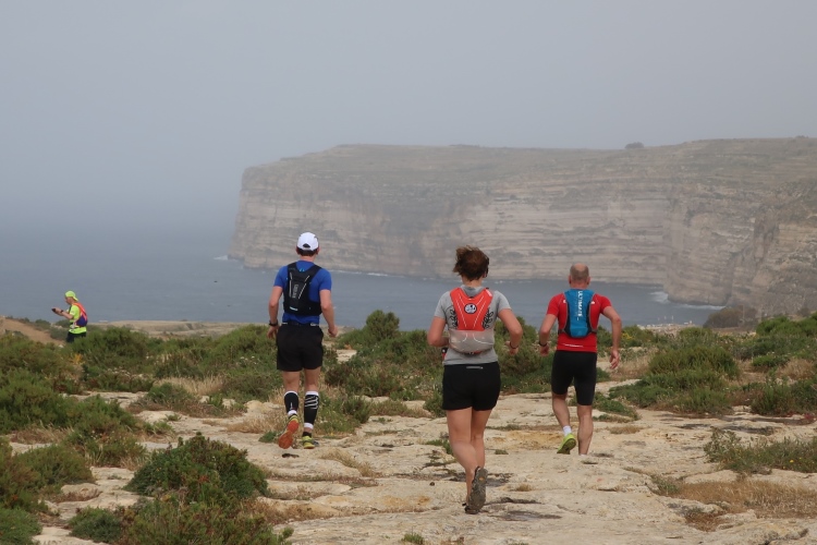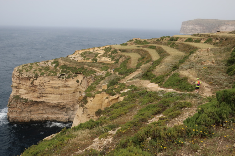 Meine Vorschusslorbeeren gelten dem XTERRA Gozo Ultra 50k, seit neun Jahren organisiert vom Hellfire Event Team. 1.400 positive Höhenmeter sind auf einem Kurs von etwa 54 km meist direkt entlang der Steilküste rund um die Mittelmeerinsel Gozo zu bewältigen, was insofern beachtlich ist, wenn man bedenkt, dass man sich dabei nur im Level von null bis 145 Metern über dem Meeresspiegel bewegt.