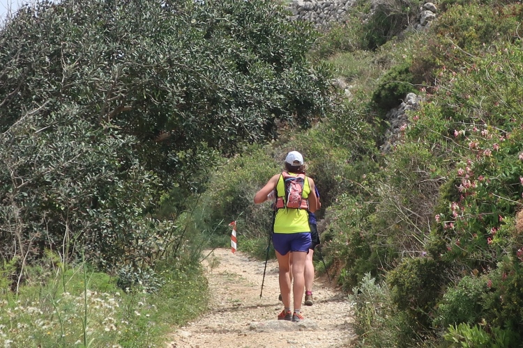 Um 7:45 Uhr heißt es beim Race Briefung die Ohren zu spitzen. Die wichtigste Botschaft von Rennleiter Nathan Farrugia: Rote Punkte und Pfeile am Boden sowie Flatterbänder weisen den Weg. Zumindest meist. Wo nichts bzw. nichts mehr zu sehen ist, sollen wir uns auf unsere Intuition verlassen. Und die ist – so viel vorweg - gefragt: Sich ab und an mal ein wenig zu verlaufen ist sozusagen inklusive. Beruhigend ist, dass auf der auch offline funktionierenden Gozo-Karte von MapsMe der Streckenverlauf gekennzeichnet ist, sodass man sich im Fall des Falles auch virtuell orientieren kann. Bei diversen Checkpoints unterwegs wird zudem kontrolliert, ob auch kein „Schäflein“ vom rechten Weg abgekommen ist. Besonders wichtig ist den Veranstaltern das eingeschaltete Mobiltelefon mit diversen Notfallnummern. Auch ein halber Liter Flüssigkeit gehört zum Pflichtgepäck. Mehr Trinkbares mitzunehmen ist aber empfehlenswert, denn Verpflegungsstellen gibt es nur etwa alle zehn Kilometer.