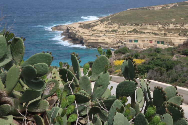 Beschaulich sind alle Dörfer auf Gozo, aber so verschlafen wie Sannat wirkt kaum eines. Auf dem Weg in den Ort hinein haben wir Gelegenheit, einen Fernblick auf die „größte Dorfkirche der Welt“ zu werfen. Unter den ohnehin maltatypischen Riesengotteshäusern haben die 3.000 Einwohner von Xewkija ihrem Dorf ohne Zweifel die Krone aufgesetzt. In Sannat selbst ist der meiste Trubel am kleinen Versorgungsstand, auch wenn es nur Wasser gibt. Über einen nicht auf den ersten Blick findbaren Pfad werden wir wenig später wieder zurück gen Steilküste gelotst.