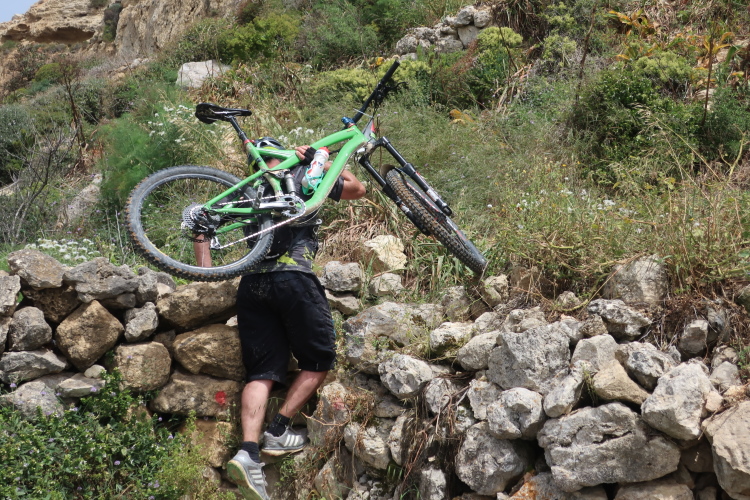 Auf einem verschlungen Single Trail durch blühendes Gestrüpp und über Stock und Stein folgen wir dem Verlauf der Bucht landeinwärts, bis wir am Ende der Bucht für ein paar Meter auf Asphalt stoßen. Wer ein bisschen Abenteuergeist mitbringt, dem sei eine Wanderung durch die sich in Fortsetzung der Bucht durch die Landschaft windende Schlucht hinauf bis Xewkija empfohlen. Wilde, unberührte Natur und bizarre Felsformationen und Höhlen, die in keinem Reiseführer stehen, winken als Belohnung. Kletterenthusiasten wenden sich am besten an Gozo Adventures, die einige der Steilhänge mit Seilsicherung erschlossen haben.