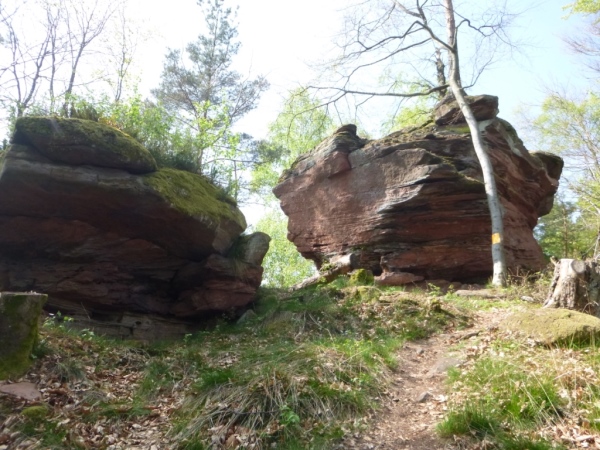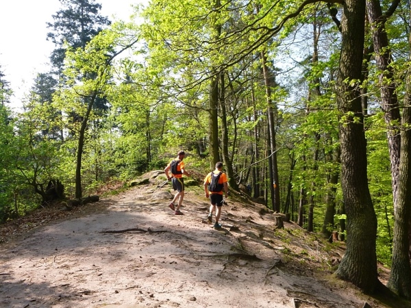 Die dritte Austragung des Défi des Seigneurs - oder die „(Guts-)Herrenrunde“, wie ein Lauffreund in Facebook geschickt übersetzte - wollte ich mir dieses Jahr nicht entgehen lassen. Wir durchstreiften hierbei den französischen Teil des Biosphärenreservats Pfälzerwald-Vosges du Nord, das 1998 als erstes grenzüberschreitendes Naturschutzgebiet der UNESCO in Europa ausgewiesen wurde. Ähnlich dem Pfälzerwald gibt es hier viele bizarre Felsformationen wie z.B. den Zigeunerfelsen, den Kingerfels, die zwischen den hochgewachsenen Bäumen aufragen. Zu überdimensional, als dass sie auf ein Foto passten!
