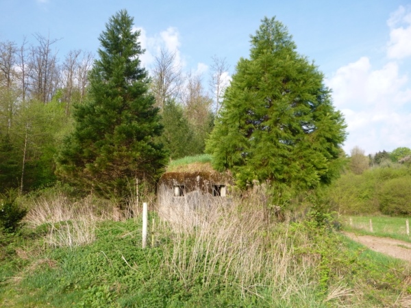 Dieser Streckenabschnitt war geprägt durch einen bunten Wechsel des Laufuntergrundes und die Überreste der Ligne Maginot begleiteten uns auf unserem Weg. Mitten im Wald kamen wir immer wieder an zugewachsenen Unterständen dieses Verteidigungssystems vorbei oder konnten die größeren Festungsanlagen mit der Aufschrift „Blockhaus“ im Wald erkennen. Etwa 5 Kilometer vor der ersten VP in Lembach (km 26 / Zeitlimit 4:10 Stunden) verließen wir den Wald und liefen entlang von grünen Obstwiesen oberhalb der Ortschaft entlang. So vermied der Veranstalter die Asphaltkilometer und führte uns über viele schöne Wiesentrails.