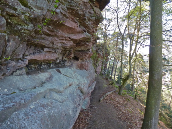 Schon wenige Minuten später erreichen wir die nächste Burg. Neu-Windstein wurde im 12. JH erbaut und 1676 zerstört. Durch diese schöne Ruine dürfen wir hindurch laufen, einer der Höhepunkte unserer heutigen Tour. Auffallend sind die neoromanischen Fenster im 1138 erbauten Wohnturm.