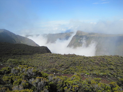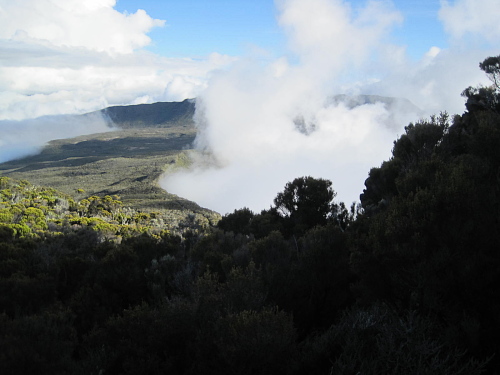 Höhenlagen mit traumhaft schönen Ausblicken auf die märchenhaften Vulkankegel wechseln sich jetzt mit sagenumwobenen Urwaldtrails ab - eine märchenhafte Kulissen. Gerade diese Eindrücke der einzigartigen Strecke machen die Faszination des Grand Raid Reunion aus. Ich beginne den Lauf zu genießen. Zeit dazu habe ich allemal, denn meine zeitlichen Ambitionen haben sich längst verflüchtigt.