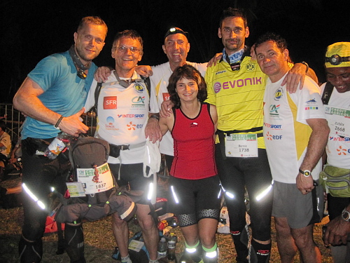 Als Zweite unserer Gruppe erreicht wenig später Tanja das Ziel. Ich vergesse nie ihren glücklichen und gleichzeitig zutiefst erschöpften Blick. Zur Belohnung bekommt auch sie das Finisher Shirt mit der Aufschrift „J´ AI SURVÉCU“ ICH HABE ÜBERLEBT. Etwas makaber, wie ich meine. Denn ein Läufer hat es tatsächlich nicht überlebt. Er ist tödlich abgestürzt.
