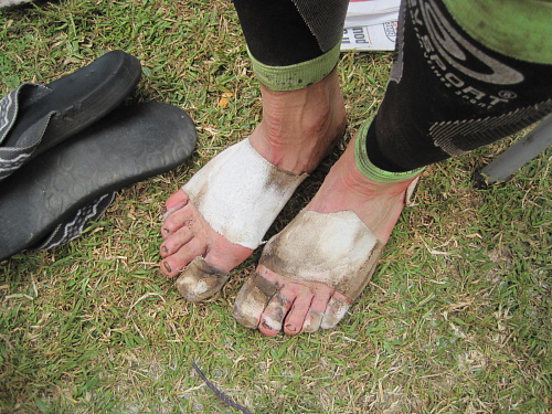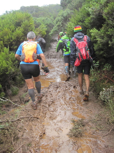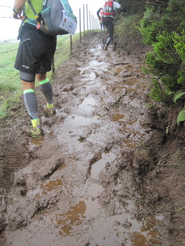 Nach der Nacht und der Kälte kommen die Sonne und die Hitze. Je weiter die Strecke nach Westen führt, desto trockener wird es. Allemal die bessere Alternative zur Regen- und Schlammschlacht des ersten Tages, auch wenn die erhoffte Erleichterung weiterhin auf sich warten lässt. Hohe Absätze rauf und runter, mitunter meterhoch und nur mit Hilfe der Hände zu überwinden. Glück gehabt, der mittlere Abschnitt des Rennens bringt keine weiteren Blessuren. Haben höhere Gewalten ein Einsehen mit uns?