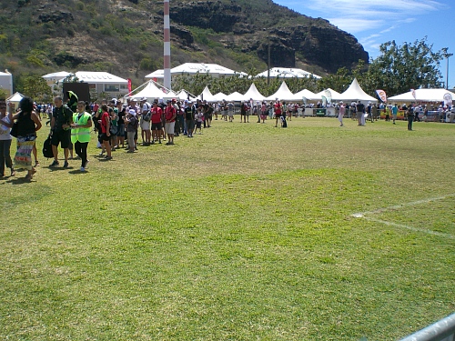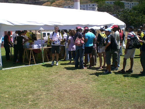 Schon bei der Abholung der Startunterlagen ist die Dimension der Veranstaltung allgegenwärtig. Fast unendlich erscheinende Warteschlangen. Mit Deutsch und auch mit Englisch kommt man kaum durch. Also gilt es sich mit Händen und allerlei Gesten zu verständigen. Wir, das sind neben uns Ulmern Tanja, Kurt und ich auch noch Alex, Bernie und Ralf. Wir kennen uns als Coolrunner Germany. Es sind gerade mal 20 Deutsche unter den 2.800 Startern. Wir kommen dennoch gut zurecht. Ausgesprochen hilfsbereit sind sie, die Einheimischen oder Kreolen, wie sie sich selbst nennen. Für die Inselbewohner ist die Laufveranstaltung wohl der sportliche Höhepunkt des Jahres. Im Fernsehen laufen stundenlange Berichte. Überall Kameras und Reporter.