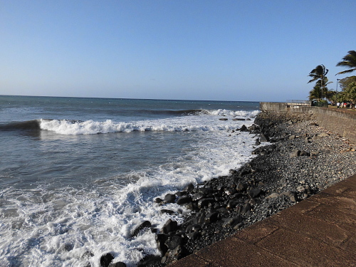 Rechts durch das kleine runde Fenster türmen sie sich auf. Vorne das Meer und dann die über 3000m hohen Vulkanberge von Reunion, eine kleine Insel im Indischen Ozean. Grün sind die Berge, nicht so karg wie die Gipfel der Alpen. Sie wirken damit in ihrer völlig anderen Art nicht minder majestätisch. Nach gut 11 Stunden Flug setzen wir zur Landung an und fühlen uns danach gleich wie in Frankreich. Französisch wird gesprochen und wir bezahlen mit dem Euro als wären wir in Lyon. Kein Wunder, Reunion ist eine französische Insel und damit fester Bestandteil der EU.