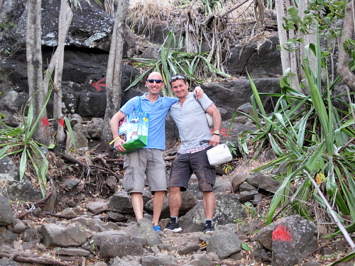 Dann die „Attraktion“: Ein kilometerlanger, von Menschenhand hergerichteten Steinweg, den Chemins des Anglais. Grobschlächtige Lavablöcke sind passgenau aneinander geschichtet und das teilweise steil bergauf und bergab. Ich frage mich noch heute, welche Übermenschen diese Knochenarbeit leisten konnten. Für das Auge ein Traum, für die Beine ein Albtraum.