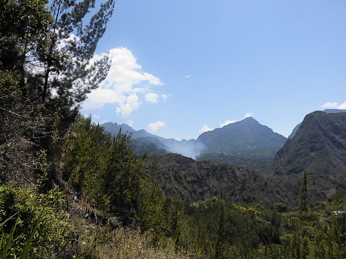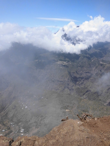 Beim Aufstieg zum Maido brennt die Sonne gnadenlos auf uns nieder. Allemal 30 Grad, oder auch deutlich mehr. Je höher wir kommen, desto weniger Schatten bietet der immer spärlicher werdende Wald. Weil ich Angst habe, mein Getränkevorrat würde nicht reichen, trinke ich die Flasche einer entgegenkommenden Wanderin leer. Vielen Dank, liebe Unbekannte. Oben auf dem Maido, erwartet mich völlig unerwartet eine volksfestartige Stimmung, fast wie bei einem Stadtmarathon in der Heimat. Hunderte Schaulustige begrüßen stürmisch die keuchenden Emporkömmlinge. Na so was … Wahrscheinlich kann man von der anderen Seite mit dem Auto den Berg „erklimmen“.