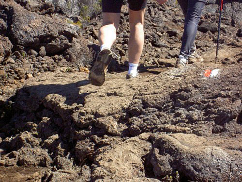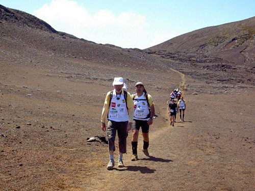 Einige Kilometer lang liefen wir am Kraterrand entlang und staunten über die bizarre Landschaft. Der Untergrund war entsprechend, mal ordentlicher Weg, mal Steinbrocken, mal erstarrte Lavafelder, also alles, was das Herz des Ultraläufers erfreut.