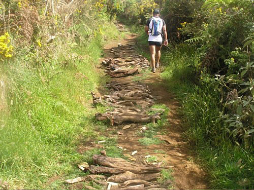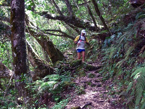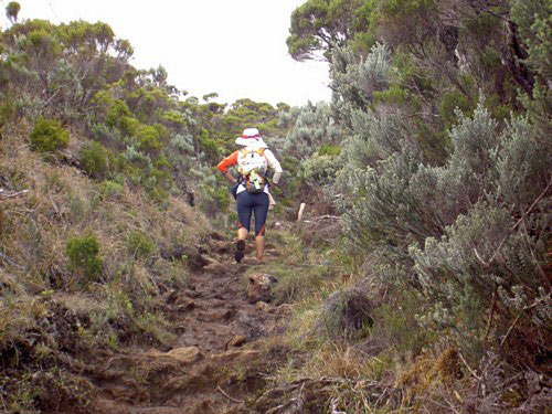 Direkt von der Straße führte jetzt ein schmaler Pfad weg. Hatte ich bis zur Verpflegungsstelle noch Bilder gemacht, vergaß ich das ab hier vollkommen, zu sehr beanspruchte mich der anstrengende Aufstieg.