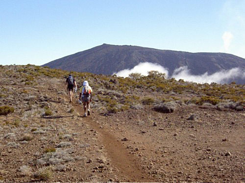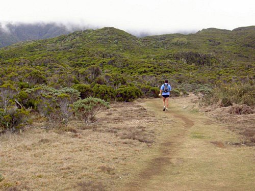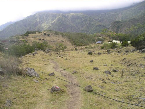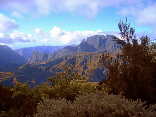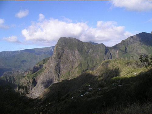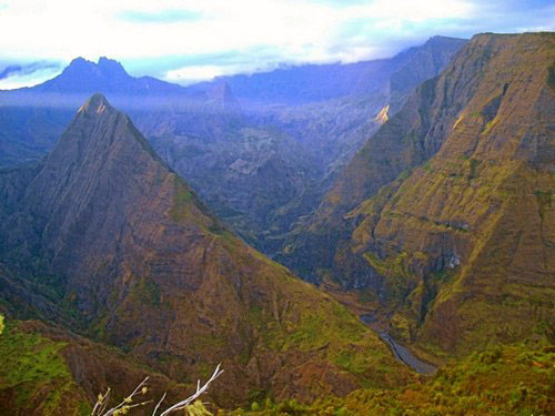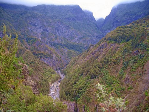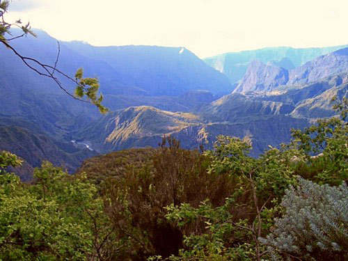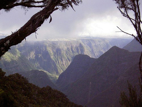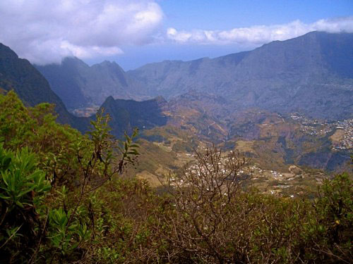 Das Landesinnere der Insel Reunion wird von drei gewaltigen Bergkesseln (cirque) gebildet, die sich wie ein Kleeblatt um den höchsten Berg der Insel, den Piton des Neiges (3.070 m) gruppieren: der Cirque de Cilaos im Süden, der Cirque des Mafate im Nordwesten und der Cirque de Salazie im Nordosten. Diese drei Kessel sind bei weitem nicht eben, wie das Wort Kessel (Cirque) vielleicht suggeriert. Ein bizarres System aus Kegelbergen, Schluchten, Plateaus und Steilwänden findet sich in jedem der drei Cirques. Teilweise sind die Berge über 2.000 Meter hoch, wie ich bereits im Cirque de Cilaos erfahren musste. Der Bergrücken, dessen Spitze der Col du Taibit bildet und den ich jetzt erreicht hatte, trennt den Cirque des Cilaos vom Cirque des Mafates, in den nun absteigen musste.